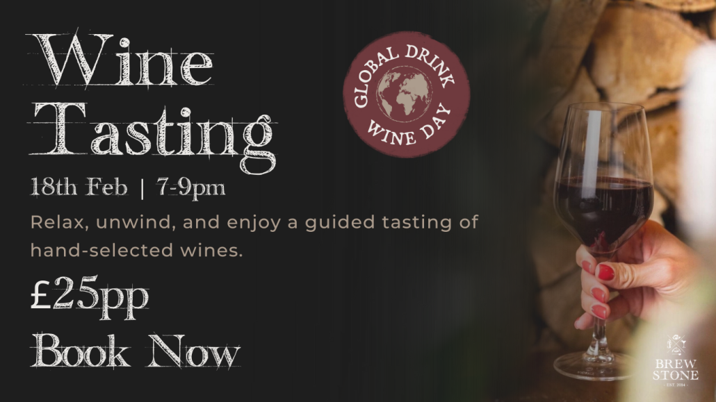 Join us at BrewStone on 18th February from 7–9pm for a relaxed and intimate Wine Tasting evening in celebration of Global Drink Wine Day. Enjoy a guided tasting of carefully hand-selected wines, perfect for unwinding, discovering new favourites, and learning a little more about what’s in your glass. Tickets are £25 per person — spaces are limited, so book now to avoid missing out.